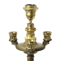 Initially it was a candlestick, but after the advent of electricity it was electrified. There are creases on the lampshade. For an additional fee I will make a lampshade of any design, any color.