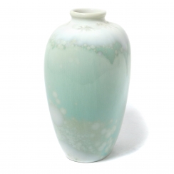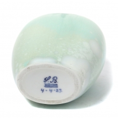 Уникальная фарфоровая ваза. Ар нуво. Роспись с фрагментами имитации морозного стекла. Зелёная кристаллическая глазурь от Сёрена Берга (Søren Berg, годы жизни: 1897–1978).