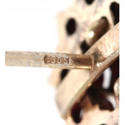 Диаметр фронтальной части: 1,3 см. Общий вес: 4 грамма, серебро 830 пробы. ========================== Silver ring with garnets, silver of 830 fineness. Gilding.