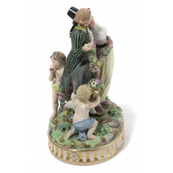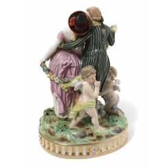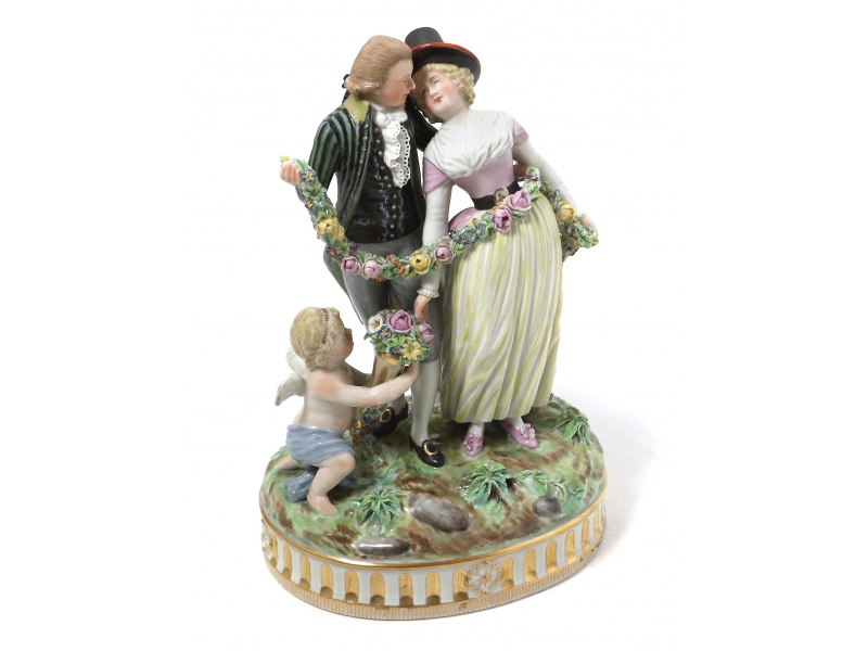 Статуэтка первого сорта. Без сколов, повреждений и без реставраций. ================================== Porcelain figurine "Loving couple with angel and flowers". Hand-painted overglaze.