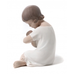 Фарфоровая фигура (статуэтка) "Девочка с куклой". Ручная подглазурная роспись.