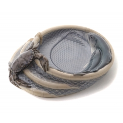 Фарфоровая ваза, декорированная фигурами краба и сельди. Ручная подглазурная роспись.