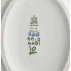 Дания, г. Копенгаген, Bing & Grondahl. Скульптор: Svend Jespersen (годы жизни: 1895-1985). Номер модели: 2269. Инициалы художника, расписавшего вазу: LØ . Клеймо производителя: 3 towers B&G Kjobenhavn Danmark Made in Denmark, 1958-1962 гг.