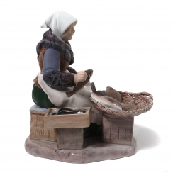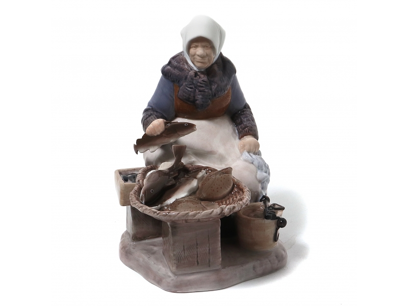 Фигура производилась также после объединения фабрик Royal Copenhagen и Bing & Grondahl (1985-1989) под брендом Royal Copenhagen, номер модели: 465. ==================================== Porcelain figurine "Fish Market". Hand-painted underglaze.