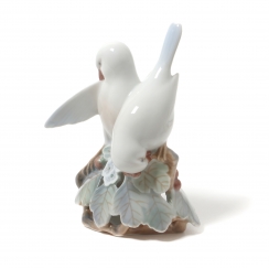 Фарфоровая фигура (статуэтка) "Пара голубков". Ручная подглазурная роспись.