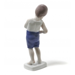 Фарфоровая фигура (статуэтка) "Малыш. Мальчик, застегивающий шорты". Ручная подглазурная роспись.