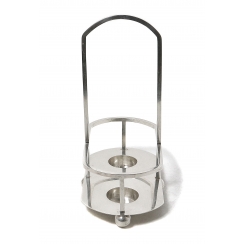 Height of the lid handle: 21.3 cm, length: 17.7 cm, width: 9.5 cm, diameter of the opening for decanters: 3.8 cm. Height of the stand on the handle: 30.2 cm, length: 21.6 cm, width: 11.1 cm.