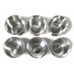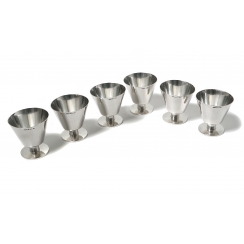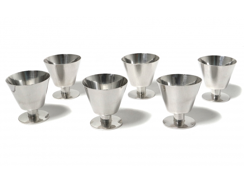 Высота: 6,5 см. Диаметр верха: 6 см. Объём: 60 мл. Общий вес: 454 грамма серебра 830 пробы. ============================== Silver wine glass (cups), 6 pcs.