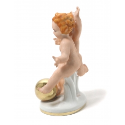 Без сколов, повреждений и без реставраций. ======================================= Porcelain figurine "Nude boys (putti) with a golden ball". Hand-painted.