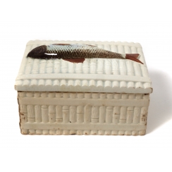 Фарфоровая маслёнка с рыбой на крышке.