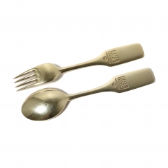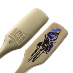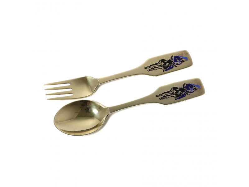 Годовые десертные ложка и вилка "Бегство в Египет". Серебро, позолота, эмаль.