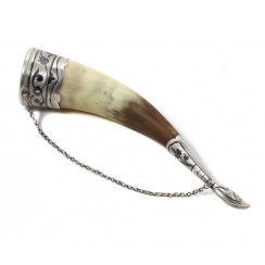 Ритон - кубок из рога с насадками из серебра 875 пробы, чернь.
