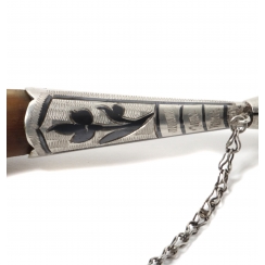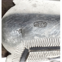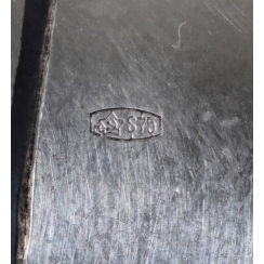 The triple Soviet- Russian hallmark, 1958-1993 – "sickle and hammer inside a five-pointed star" with letter "в" and number "875", where: "sickle and hammer inside a five-pointed star" – the national hallmark; letter "в" - code of the Kostroma Assaying Office. "875" – fineness mark.