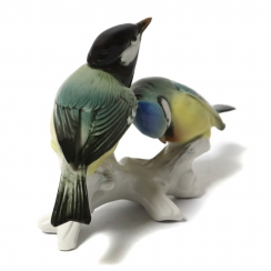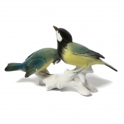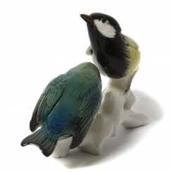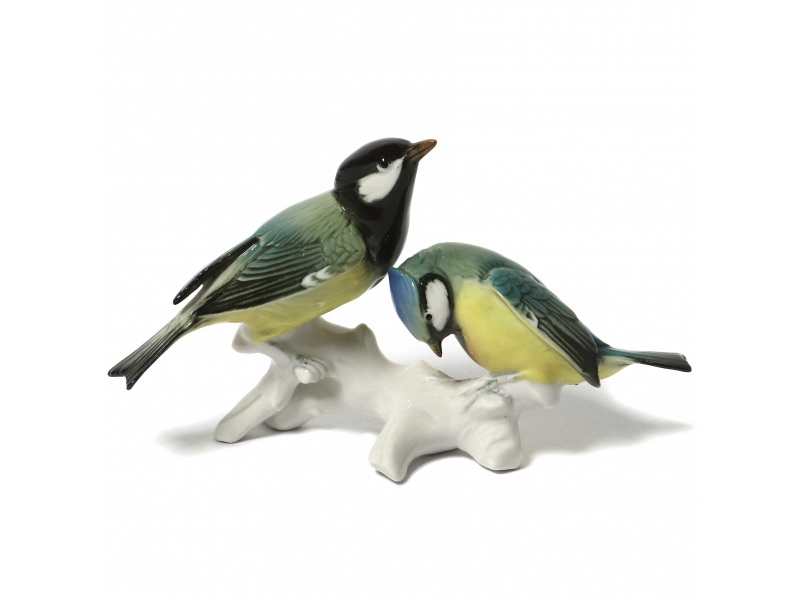 Фарфоровая фигура (статуэтка) "Пара синиц на ветке". Ручная подглазурная роспись.
