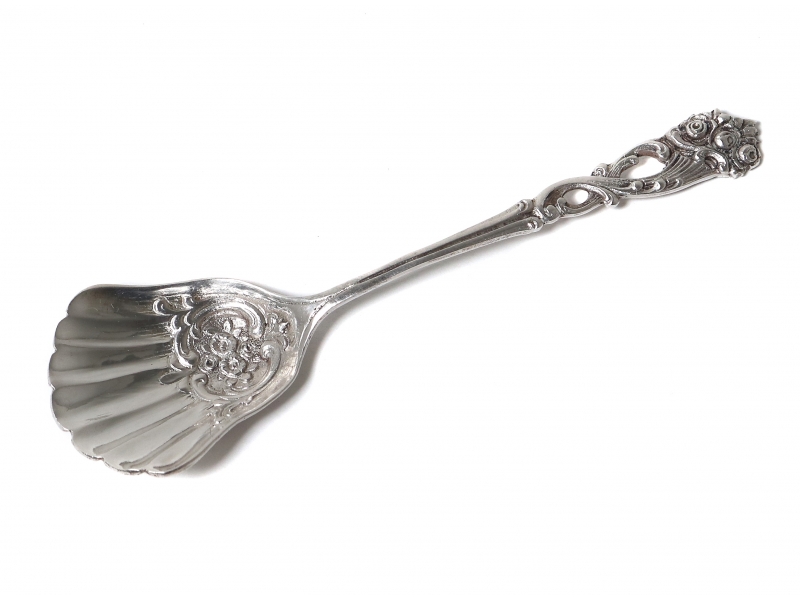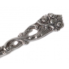 Длина: 12 см. Вес: 16 граммов серебра 830 пробы. ======================= Silver serving spoon for sugar, decorated with roses.