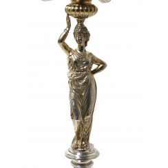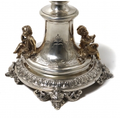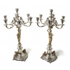 Пара цельносеребряных подсвечников ( канделябров ) на 7 свечей. Основание декорировано фигурами путти и женщины.