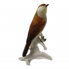 Фарфоровая фигура (статуэтка) "Соловей на ветке". Ручная подглазурная роспись.