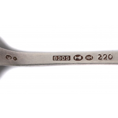 Норвегия, г.Тёнсберг, мастерская Thorvald Marthinsen Solvvarefabrikk (основана в 1883 году). Номер модели: 317 Ввезена в Швецию. Государственное пробирное клеймо Швеции для ввезенных серебряных изделий.