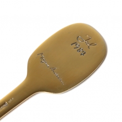 Клеймо дизайнера. «A.MICHELSEN Sterling Danmark» - клеймо, удостоверяющее, что изделие произведено в датской мастерской Антона Михельсена, поставщика Датского королевского двора, из стерлингового серебра. С 1910 года именитый датский производитель столового серебра A.Michelsen выпускает каждый год так называемую Christmas Spoon, а также десертные наборы, состоящие из ложки и вилки, которые традиционно датчане, да и не только, включают в рождественские подарки близким. Авторами дизайна становятся наиболее именитые датские дизайнеры, художники, скульпторы. ================================== The Danish сollection annual tea spoon "Festival of Light". Silver, gilding, enamel. In the original box.