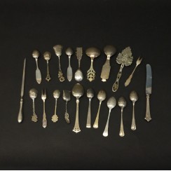 258038 - Серебряные сервировочные вилки, 2 шт. Финляндия, 1957 год.Серебряные сервировочные вилки, 2 шт, декорированные цветами розы.