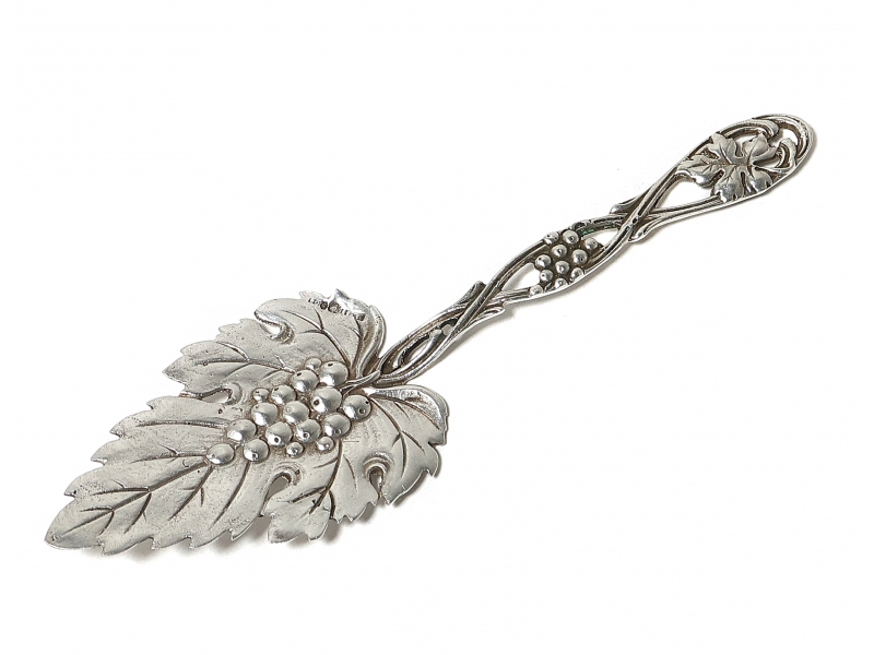 221141 - Серебряная сервировочная лопатка. Швеция, 1942 год.Серебряная сервировочная лопатка в виде виноградного листа, декорированная гроздьями винограда.