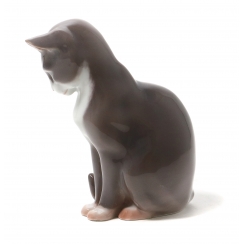 Эта же фигура выпускалась фабрикой высотой 10,5 см, номер модели: 2454; и после 1989 года под маркой Royal Copenhagen, номер модели: 500. ============================= Porcelain figurine "Cat sitting". Hand-painted underglaze.