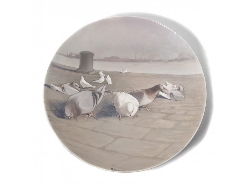 229687 - Большая настенная тарелка, декорированная пейзажем с голубями на набережной, диаметр 39,5 см, высота 7 см, 98-23, CARL FREDERIK LIISBERG, 9487 |