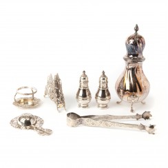 Информация о лоте 394103 - Серебряная ёмкость для сахарной пудры. Дания 216021 - Солонка и перечница, 70 гр, 830 пр, высота 9,5 см, диаметр основания2,8 см, диаметр верха горла 2 см 337762 - Серебряное ситечко для чая на подставке. Голландия/Швеция 324463 - Щипцы, Китай, 84 гр, 19,5 см 343125 - |