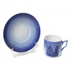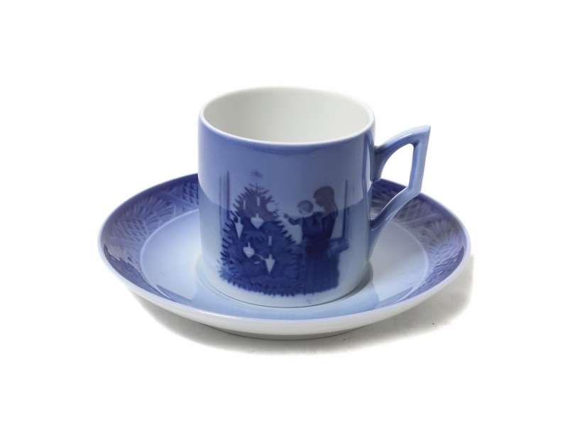 Годовая рождественская фарфоровая чашка с блюдцем 1981 года "Восхищение рождественской елкой" (Juletræet beundres).