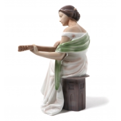 Фарфоровая фигура (статуэтка) "Девушка с гитарой". Ручная подглазурная роспись.