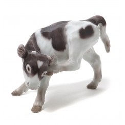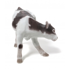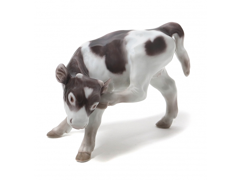 Фигуру продолжали производить также после объединения фабрик Royal Copenhagen и Bing & Grondahl (1985-1989) под брендом Royal Copenhagen, с новым номером модели: 432. ==================================== Porcelain figurine "Calf scratching ear". Hand-painted underglaze.
