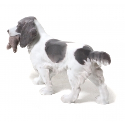 260108 - Фарфоровая статуэтка "Спаниель". Bing & GrondahlФарфоровая фигура (статуэтка) "Спаниель с пойманной птицей". Ручная подглазурная роспись.