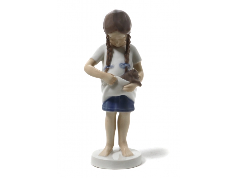 296472 - Фарфоровая фигура Девочка с котёнком. Bing & GrondahlФарфоровая фигура (статуэтка) "Девочка с котёнком". Ручная подглазурная роспись.
