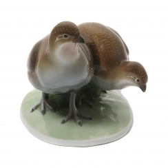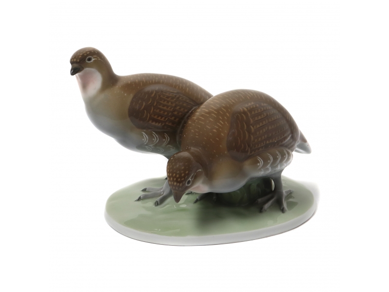 Фарфоровая фигура (статуэтка) "Пара куропаток". Ручная подглазурная роспись.