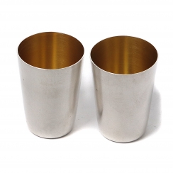 Высота: 7 см, диаметр верха: 4,5 см. Объём: 25 мл. Вес: 30 граммов серебра 916 пробы.