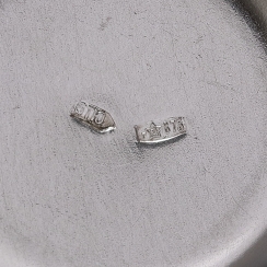 Mark:"ЗЗИН" - workshop mark. The triple Russian hallmark since 1994 – "the women’s head wearing a kokoshnik facing to the right" with letter "з"and number "875", where: "the women’s head wearing a kokoshnik facing to the right" – the national hallmark; "з" - code of the Caspian Assaying Office (Makhachkala); "875" – the fineness mark.