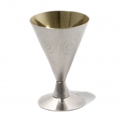 Высота: 7,5 см, диаметр верха: 4 см. Объём: 25 мл. Общий вес: 65 граммов серебра 875 пробы.