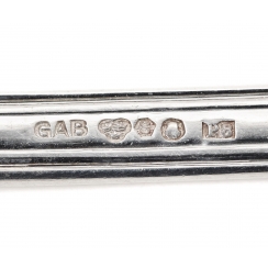"GAB" - клеймо крупнейшей гильдии ювелирных мастеров Швеции GuldsmedsAktieBolaget, основанной в 1868 году. В составе компаний K.A. Rasmussen Group по сей день является ведущим производителем изделий из серебра.
