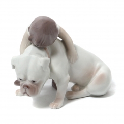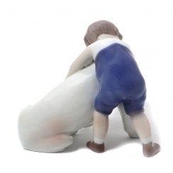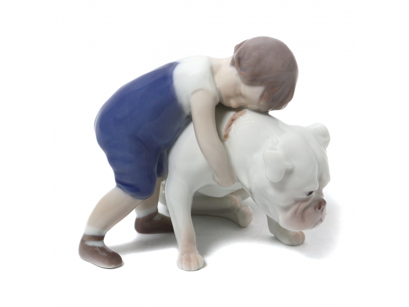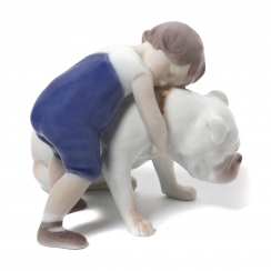 Фигура производилась также после объединения фабрик Royal Copenhagen и Bing & Grondahl (1985-1989) под брендом Royal Copenhagen, номер модели: 427. ============================== Porcelain figurine "Two Friends" (Child with dog). Hand-painted underglaze.