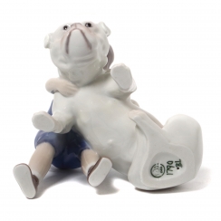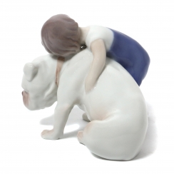 Фарфоровая фигура (статуэтка) "Два друга" (Мальчик с собакой). Ручная подглазурная роспись.