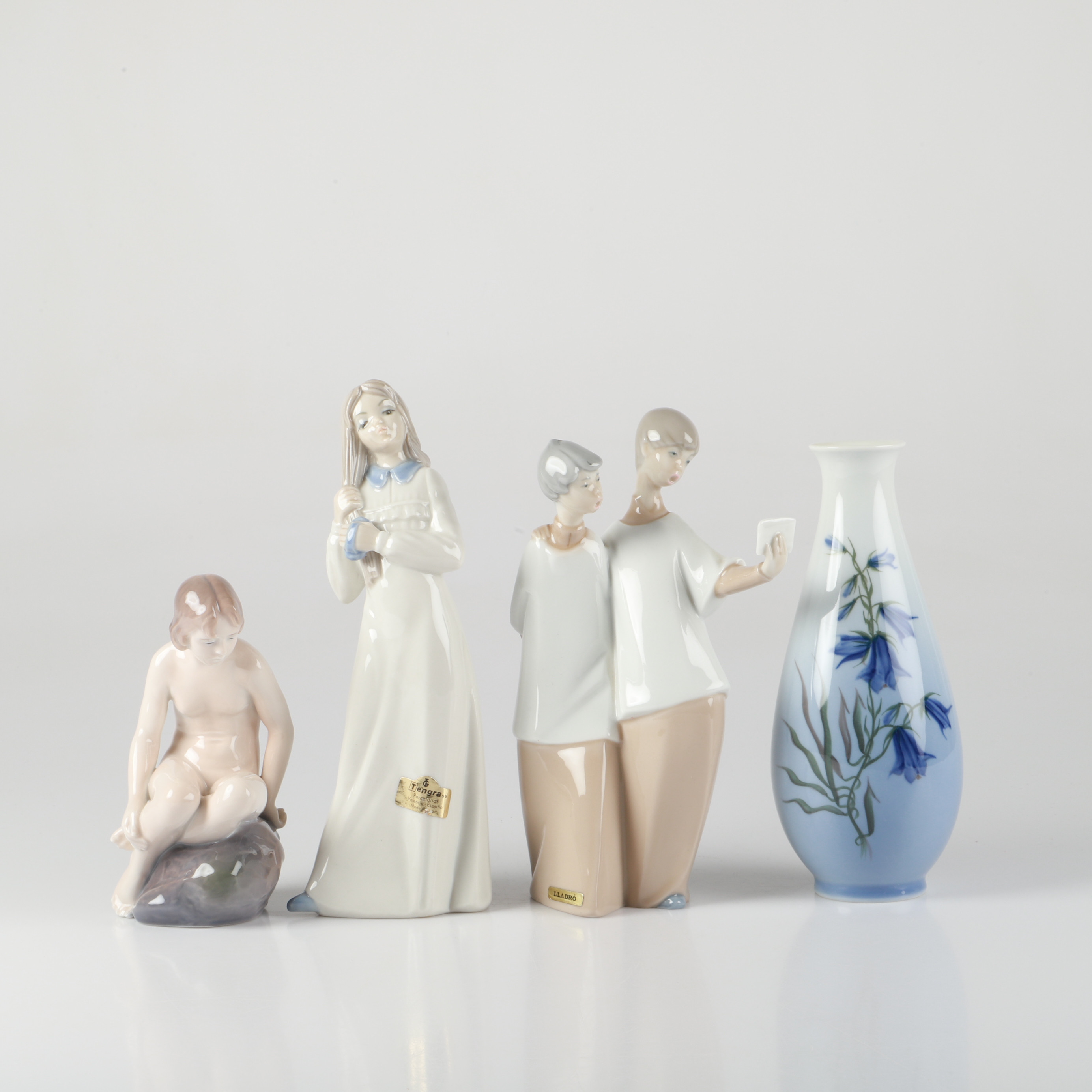 Информация о лоте 399606 - Фарфоровая фигура "Девушка". Tengra 344080 - Девочка на камне, 67, RC_4027 338842 - Фарфоровая ваза с колокольчиками. Royal Copenhagen 304623 - Фарфоровая фигура "Хор мальчиков". Lladro |