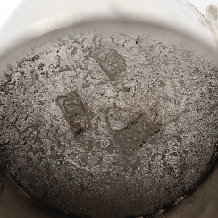 Высота: 2,3 см, диаметр: 1,8 см. Вес: 3 грамма, серебро 830 пробы.
