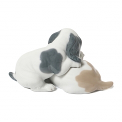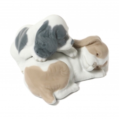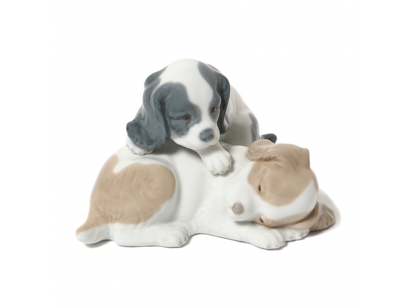 Фарфоровая фигура (статуэтка) "Пара щенков" (Проснись!). Ручная подглазурная роспись.