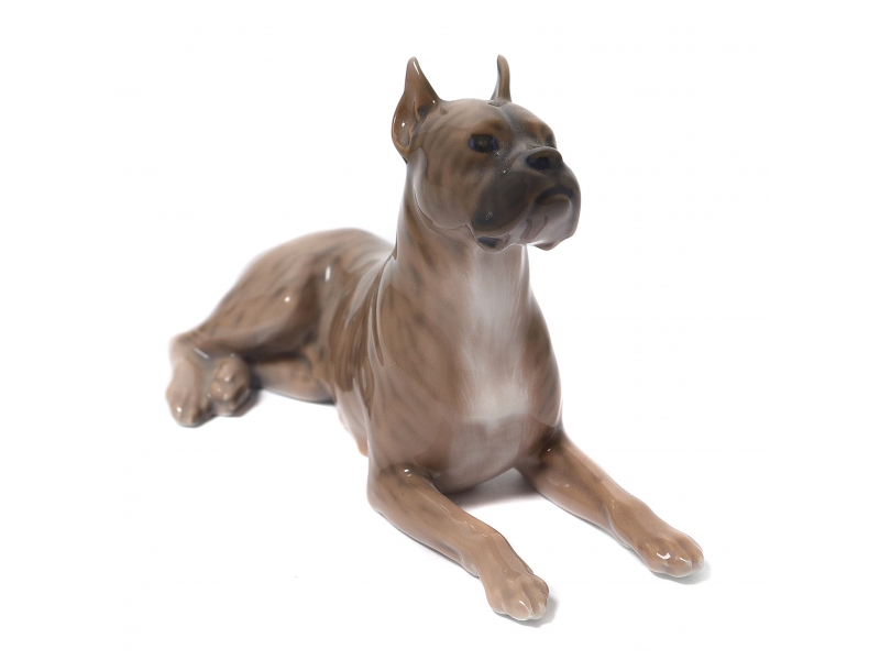 Фарфоровая фигура (статуэтка) "Лежащий боксер". Ручная подглазурная роспись.