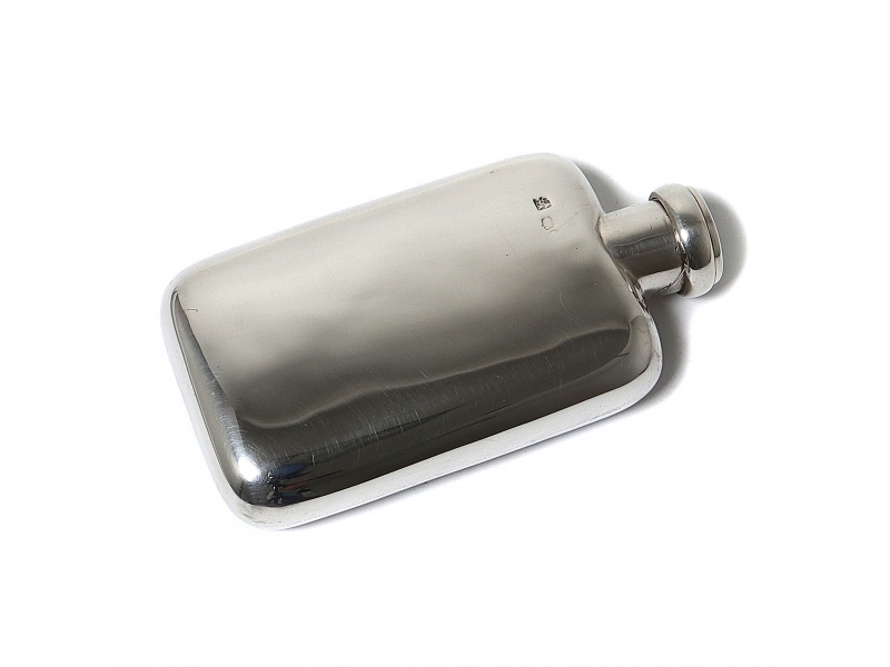 Максимальная длина: 11,8 см, ширина: 6,3 см, толщина: 2,2 см. Объём: 110 мл. Вес: 103 грамма серебра 925 пробы. ============================= Sterling silver pocket hip flask (whiskey bottle).