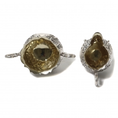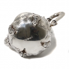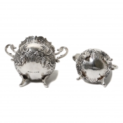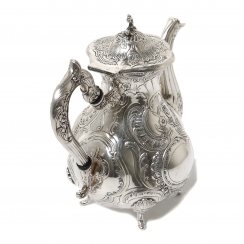 Высота кофейника по хватку на крышке 18,7 смВысота сахарницы по край чаши 8,5 см, диаметр верха 7,4 смВысота молочника по носик 8,5 см