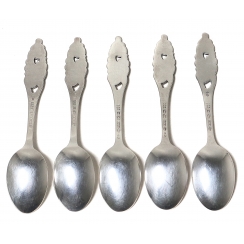 Длина: 10 см. Общий вес: 41 грамм серебра 830 пробы. ================================= Silver coffee spoons, 5 pcs.