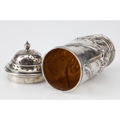 Общий вес: 355 граммов серебра 925 пробы. ============================ Silver spice set, 4 items: sugar shaker castor, salt cellar, pepper shaker and mustard. Decorated with floral patterns.