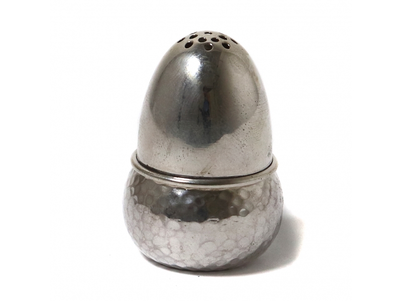 Высота: 4 см. Вес: 12 граммов серебра 830 пробы. =============================== Silver salt shaker in the form of acorn.