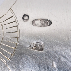![]() 282203 - Серебряные кольца под салфеток в виде змеи, 2 шт. ШвецияСеребряные кольца под салфеток в виде змеи, 2 шт.Швеция, 1996 год. Максимальная высота: 5 см, диаметр: 4,4 см. Общий вес: 58 граммов серебра 925 пробы. ============================= Silver rings for napkins in the form of a snake, 2 pcs. Sweden, year 1996. Maximum height: 5 cm, diameter: 4.4 cm. Total weight: 58 grams of sterling silver 925 fineness. ![]() 299146 - Серебряные кольца под салфеток, 2 шт. Швеция, 1996 год.Серебряные кольца под салфеток в виде змеи, 2 шт.Швеция, 1996 год. Максимальная высота: 5 см, длина: 5 см, ширина: 4 см. Общий вес: 61 грамм серебра 925 пробы. ============================= Silver rings for napkins in the form of a snake, 2 pcs. Sweden, year 1996. Maximum height: 5 cm, length: 5 cm, width: 4 cm. Total weight: 61 grams of sterling silver 925 fineness. ![]() 256502 - Серебряное кольцо для салфеток. Швеция, 1905 годСеребряное кольцо для салфеток в стиле модерн.Швеция, г. Стокгольм, 1905 год, мастерская GAB. "GAB" - клеймо крупнейшей гильдии ювелирных мастеров Швеции GuldsmedsAktieBolaget, основанной в 1868 году. В составе компаний K.A. Rasmussen Group по сей день является ведущим производителем изделий из серебра. Высота: 3,3 см, диаметр: 3,7 см. Вес: 23 грамма серебра 830 пробы. С гравировкой. =========================== Silver napkin ring. Modern. Sweden, Stockholm, year 1905, workshop GAB. "GAB" is the hallmark of the largest guild of jewelers in Sweden, GuldsmedsAktieBolaget, founded in 1868. As part of the companies K.A. The Rasmussen Group is still a leading manufacturer of silver. Height: 3.3 cm, diameter: 3.7 cm. Weight: 23 grams of silver 830 fineness. There is engraving "Dagmar". ![]() 287462 - Серебряные чайные ложки, 6 шт, позолота. СССРНебольшие серебряные чайные ложки, 6 шт, позолота.СССР, Бакинская Ювелирная фабрика, г. Баку, 1970 год. Длина: 11,8 см. Общий вес: 87 граммов серебра 875 пробы. Клейма: "0БЮ" - клеймо Бакинской ювелирной фабрики, 1970 год. Трехзначное пробирное советско-российское клеймо 1958-1993 гг. - "серп и молот на фоне пятиконечной звезды" с буквой "Б" и цифрой "875", где: "серп и молот на фоне пятиконечной звезды" - знак удостоверения; буква "Б" - Прикаспийской инспекции пробирного надзора, г. Баку; цифра "875" удостоверяет, что изделие выполнено из серебра 875 пробы. ============================ Small silver teaspoons, 6 pcs, gilding. USSR, Baku Jewelry Factory, Baku, year 1970. Length: 11.7 cm. Weight: 87 grams of silver 875 fineness. Marks: "0БЮ" - the mark of the Baku Jewelry Factory, year 1970. The triple Soviet- Russian hallmark, 1958-1993 – "sickle and hammer inside a five-pointed star" with letter "Б" and number "875", where: "sickle and hammer inside a five-pointed star" – the national hallmark; letter "Б" - code of the Caspian Assaying Office (Baku). "875" – fineness mark. ![]() 294183 - Серебряные кофейные ложки, 6 шт. НорвегияСеребряные кофейные ложки, 6 шт.Дизайн "Kloster". В коробке. Норвегия, г.Тёнсберг, середина 20 века, мастерская Thorvald Marthinsen Solvvarefabrikk (основана в 1883 году). Номер модели: 240. Ввезены в Швецию. Государственное пробирное клеймо Швеции для ввезенных серебряных изделий. Длина: 10,4 см. Общий вес: 54 грамма серебра 830 пробы. =============================== Silver coffee spoons, 6 pcs. Pattern "Kloster". In a box. Norway, Tønsberg, mid 20th century, workshop Thorvald Marthinsen Solvvarefabrikk (founded in 1883). Model: 240. Was imported to Sweden. Length: 10.4 cm. Total weight: 54 grams of silver 830 fineness. ![]() 231801 - Серебряные кофейные ложки, 6 шт. НорвегияСеребряные кофейные ложки, 6 шт.Дизайн "Valdres". Норвегия, ввезены в Швецию, г.Мальмё, 1944 год. Государственное пробирное клеймо Швеции для ввезенных серебряных изделий. Длина: 10 см. Общий вес: 51 грамм серебра 830 пробы. =============================== Silver coffee spoons, 6 pcs. Pattern "Valdres". Norway, was imported to Sweden, Malmö, year 1944. Length: 10 cm. Total weight: 51 grams of silver 830 fineness. ![]() 204878 - Серебряная чайная ложка. СССР, 1954 годСеребряная чайная ложка.СССР, г. Москва, Мстера, 1954 год. Длина: 10,2 см. Вес: 12 граммов серебра 875 пробы. Клейма: "ММ4" - клеймо Мстера, 1954 год. Трехзначное пробирное советское клеймо в виде лопатки 1954-1958 гг. - "голова рабочего" с литерой "Δ" (дель